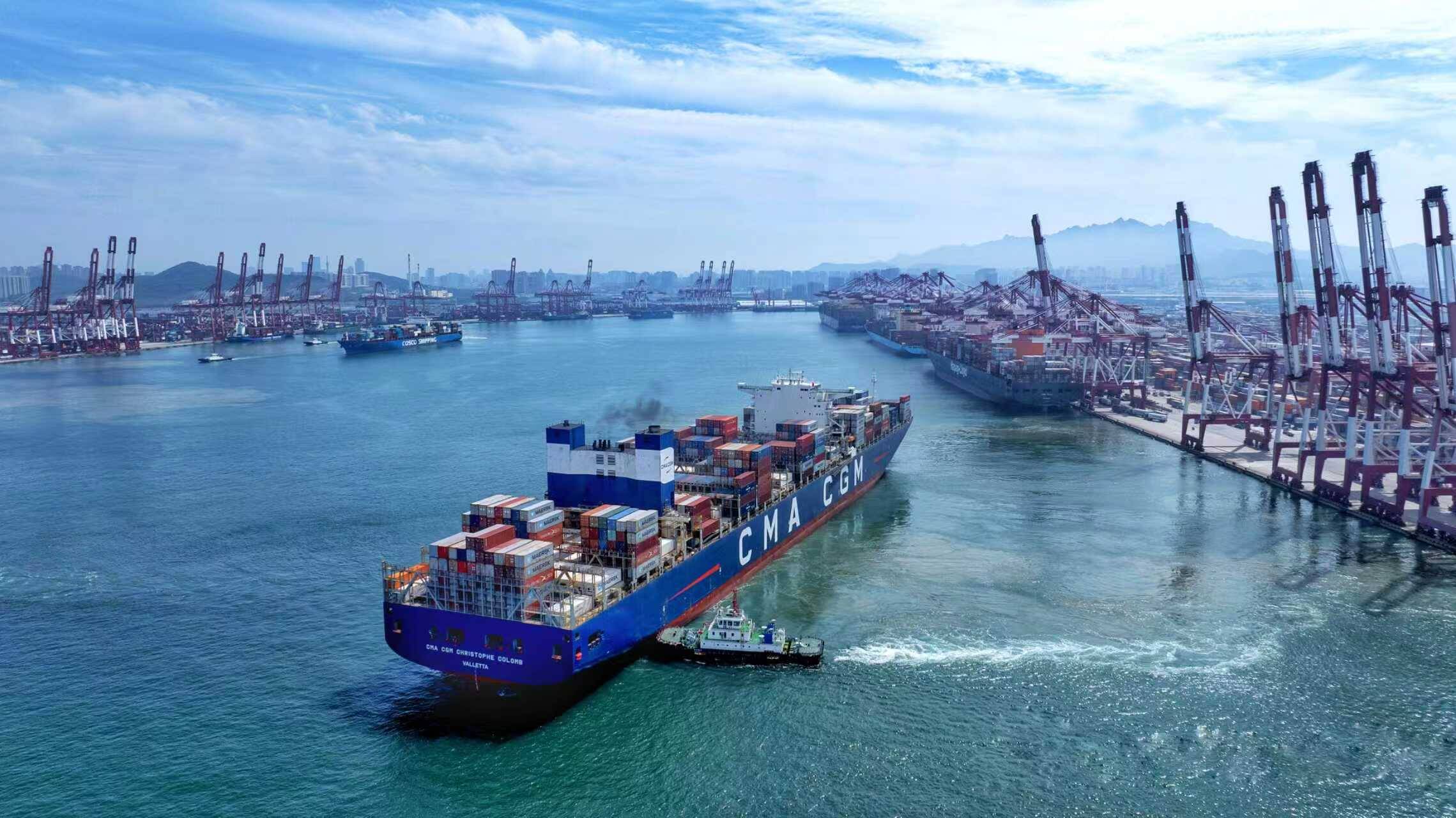 全球航线布局上,青岛港持续开辟和加密远洋干线和直达航线,今年新增19条集装箱航线,涵盖东南亚、中东、印巴等“一带一路”及中南美新兴市场区域,通达180多个国家和地区的700多个港口;创新打造“巴西-青岛-比利时”“巴西-青岛-荷兰”等特色通道,让大宗商品、跨境电商货物实现“一站中转、全球直达”。