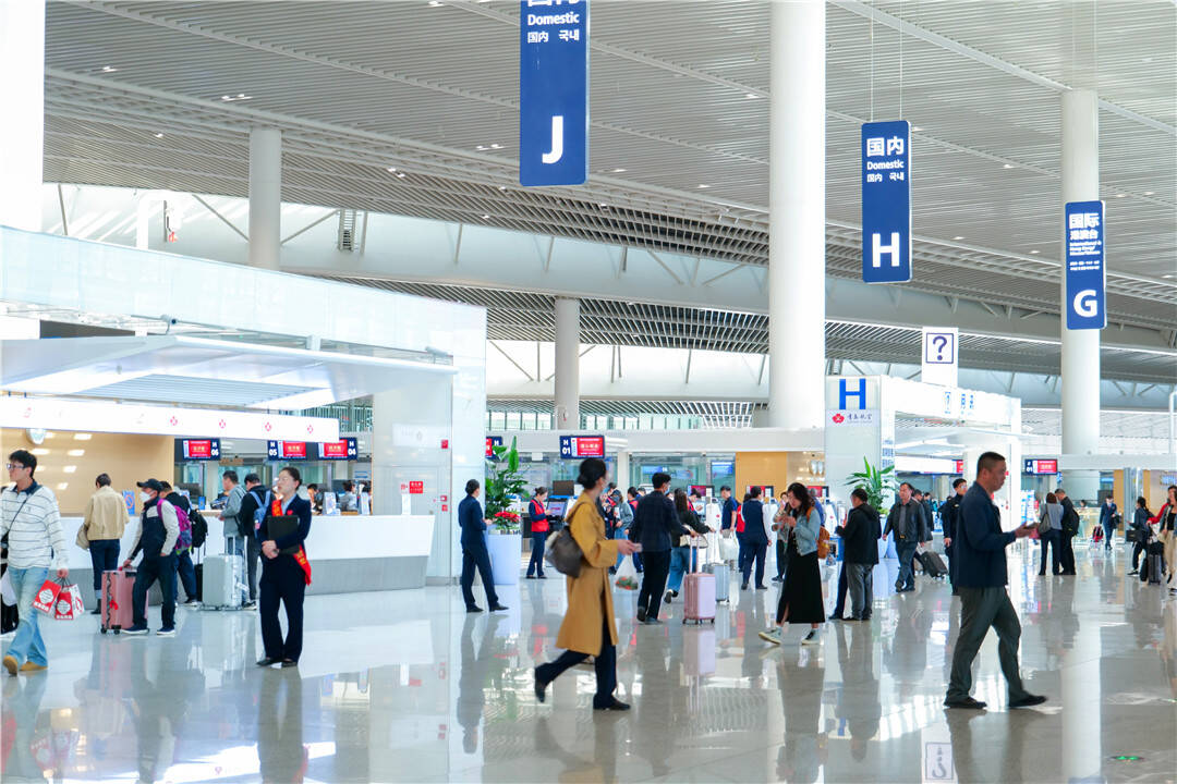把压力留给自己、把时间留给旅客,是青岛机场坚持推进智慧化建设的理念之一。作为山东省首座民航最高等级的4F级国际机场,青岛机场自建设之初便将“平安、绿色、智慧、人文”理念贯穿其中,通过全过程、全要素优化布局,为旅客打造高品质出行体验。航站楼采用集中尽端式设计,五指廊与大厅一体相连,最远步行距离仅为550米,安检、值机、商业等功能集中,满足旅客多样化、个性化的需求。