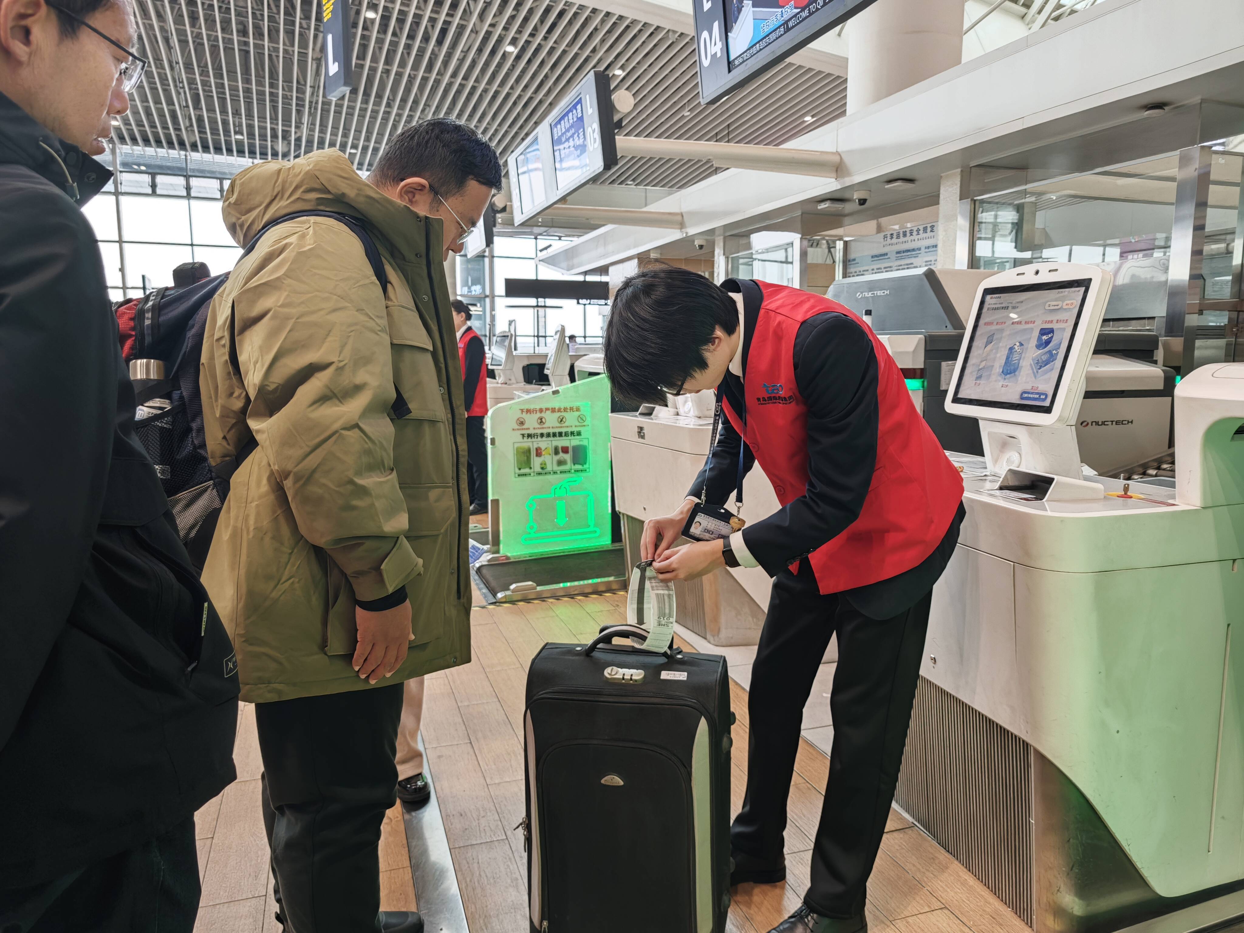 面对元旦出行高峰,青岛机场科学调配服务资源,动态优化值机、安检、问询等关键环节的人员配置,开设多个人工值机柜台及自助服务终端,提升旅客分流效率。针对无陪儿童、无陪老人、首乘旅客、母婴群体等特殊旅客,青岛机场设立“爱心柜台”与“绿色通道”,提供全程引导帮扶、行李协助、优先登机等一站式贴心服务;在安检区增设“家庭专属通道”“加急旅客通道”,减少旅客排队等候时间,让出行更具温度。